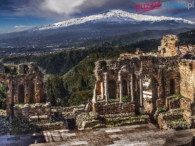 Lasy, Sycylia, Teatru, Włochy, Góry, Ruiny