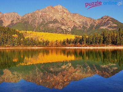 Puzzle Lasy, Góry, Jezioro, Odbicie