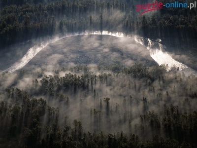 Puzzle Lasy, Poranna, Mgła, Rzeka