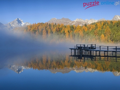 Puzzle Lasy, Jezioro, Molo, Mgła