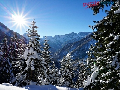 Puzzle Lasy, Zima, Góry, Promienie Słońca