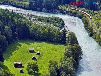 Puzzle Łąka, Rzeka, Lasy, Domy