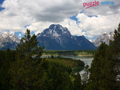 Puzzle Lasy, Góry, Rzeka, Chmury