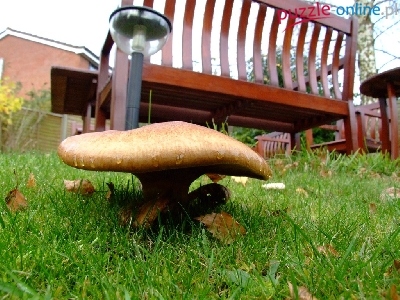 Latarnia, Grzyb, Ogród, Ławka, Trawa