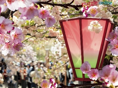 Latarnia, Wiosna, Kwitnące, Drzewa, Park