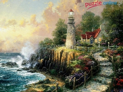Puzzle Latarnia morska, Wybrzeże, Morze, Ścieżka