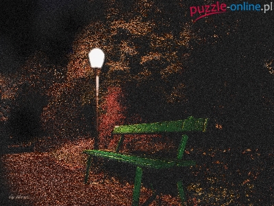 Latarnia, Ławeczka, Park, Nocą, Zielona