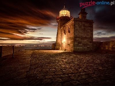 Puzzle Latarnia, Zachód, Słońca, Morska