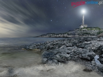 Puzzle Latarnia morska, Wybrzeże, Noc