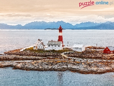 Latarnia, Domy, Norwegia, Wysepka, Morska