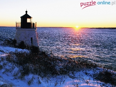 Puzzle Latarnia Morska, Wybrzeże, Zachód Słońca