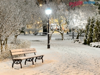 Latarnie, Zima, Park, Alejki, Ławki
