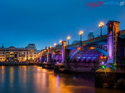Latarnie, Podświetlany, Budynku, Most, Rzeka, Gmach
