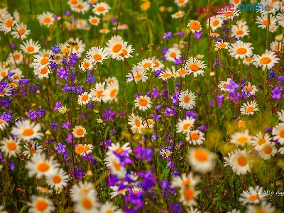 Dzwonki, Kwiaty, Fioletowe, Lato, Rumianki, Białe, Łąka