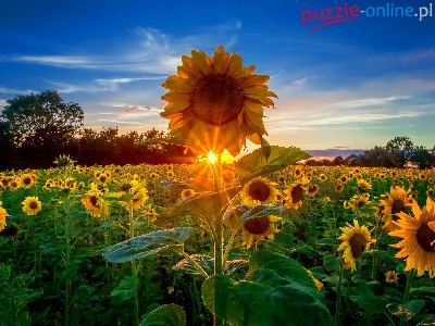 Puzzle Lato, Słoneczniki, Zachód Słońca