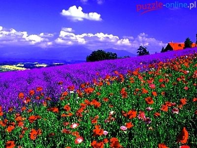 Puzzle Lawenda, Pole, Kwiaty, Maki