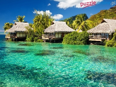 Puzzle Lazurowe, Palmy, Domki, Morze