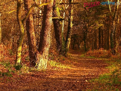 Puzzle Leśna, Jesień, Drzewa, Droga