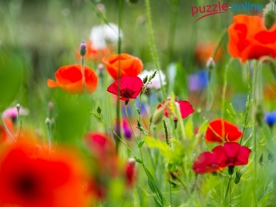 Łąka, Maki, Rozmycie, Letnia, Kwiaty