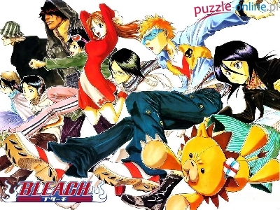 Puzzle lew, Bleach, ludzie, napis