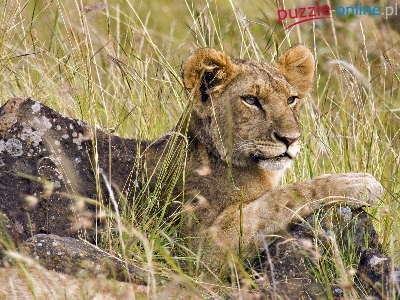 Puzzle Trawa, Lew, Kamień