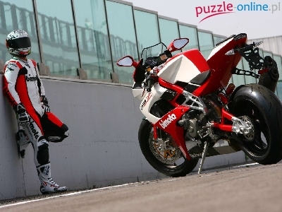 profil, lewy, Motor Sportowe, Bimota, Opony tylne, Łańcuch, koło Biały, Czerwono, Bimbota DB7 czerwono-biały, Motor lewy, kierowca, tor, tył wystawa, pokaz