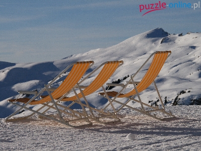 Puzzle Leżaki, Zima, Góry, Śnieg