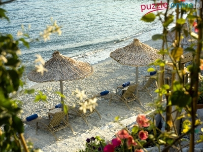 Puzzle Leżaki, Plaża, Morze, Parasole