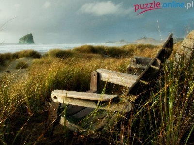 Puzzle Leżaki, Morze, Plaża, Trawy