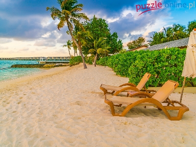 Morze, Leżaki, Plaża, Tropiki, Palmy