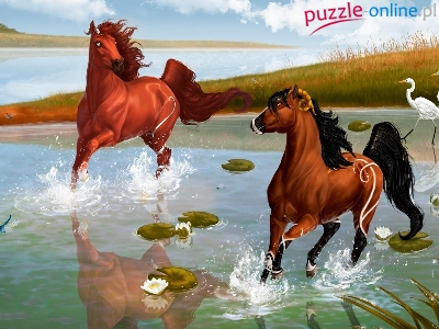 Puzzle Lilie, Konie, Woda, Wodne