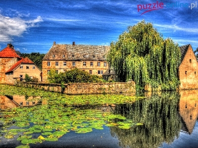 Lilie, Budynek, Wierzba, Woda, Wodne