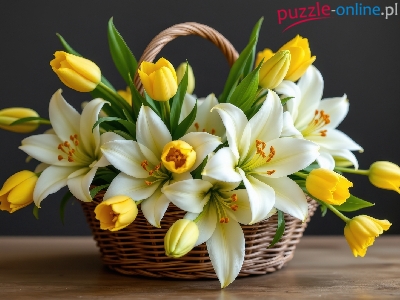 Tulipany, Białe, Kwiaty, Lilie, Koszyk, Żółte