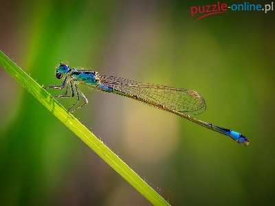 Puzzle Niebieska, Liść, Ważka