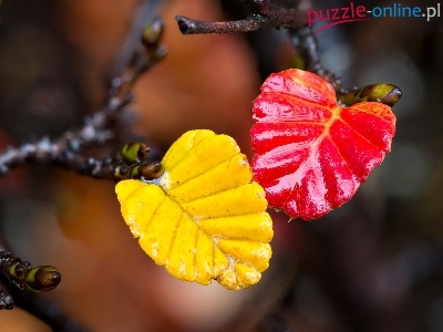 Puzzle Liść, Czerwony, Żółty, Gałązki
