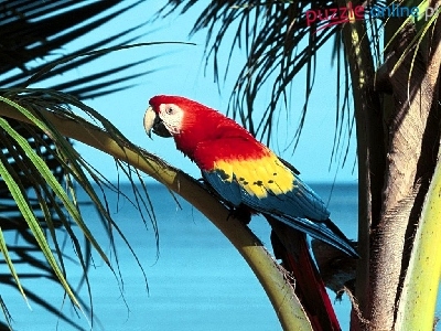 Puzzle Liście, Papuga, Ara, Palmy