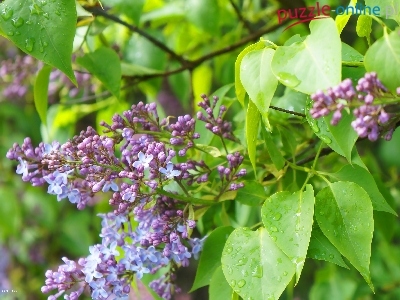 Puzzle Liście, Kwiaty, Bez, Krople