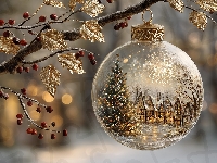 Gałązka, Bombka, Boże Narodzenie, Złote, Grafika AI, Liście