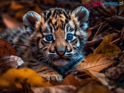 Puzzle Brązowe, Młody, Tygrys, Liście