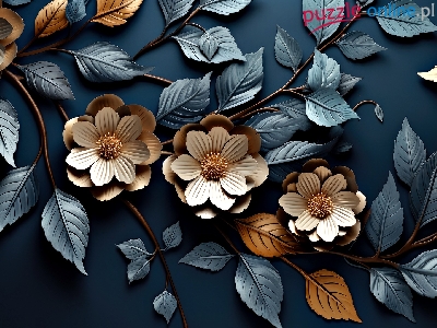 Tło, Kwiaty, Złote, Liście, Grafika, Ciemne