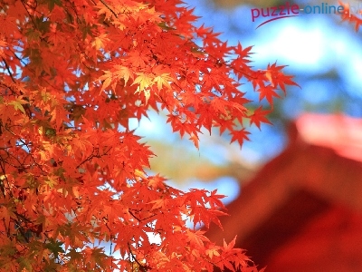 Puzzle Liście, Jesień, Czerwone, Klon