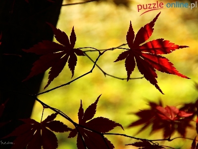 Puzzle Liście, Klon Palmowy, Czerwone, Jesień