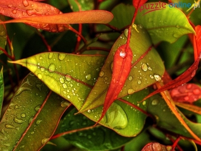 Liście, Rosy, Zielono, Czerwone, Krople