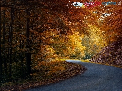 Liście, Jesień, Las, Droga, Światło