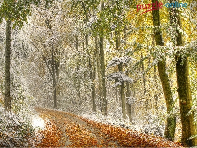 Liście, Śnieg, Las, Droga, Przyprószony