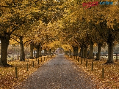 Liście, Droga, Drzewa, Jesień