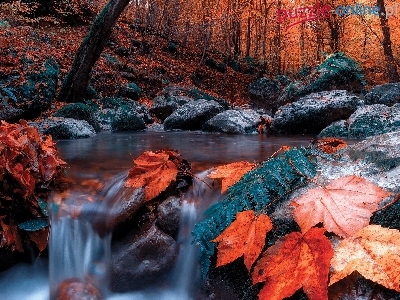 Liście, Las, Kamienie, Jesień, Drzewa, Rzeka