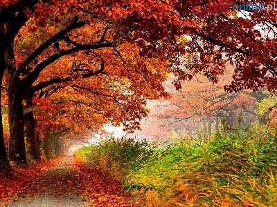 Puzzle Liście, Kolorowe, Drzewa, Alejka