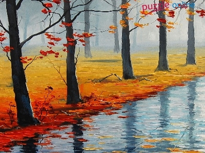 Liście, Obraz, Rzeka, Drzewa, Jesień