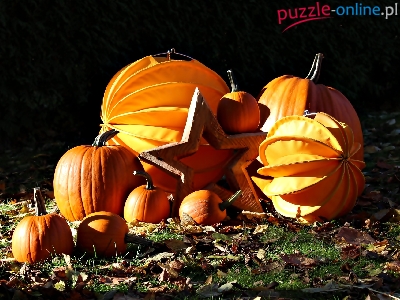 Puzzle Liście, Halloween, Dynie, Gwiazda